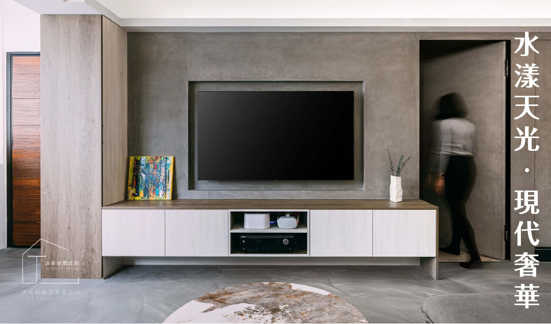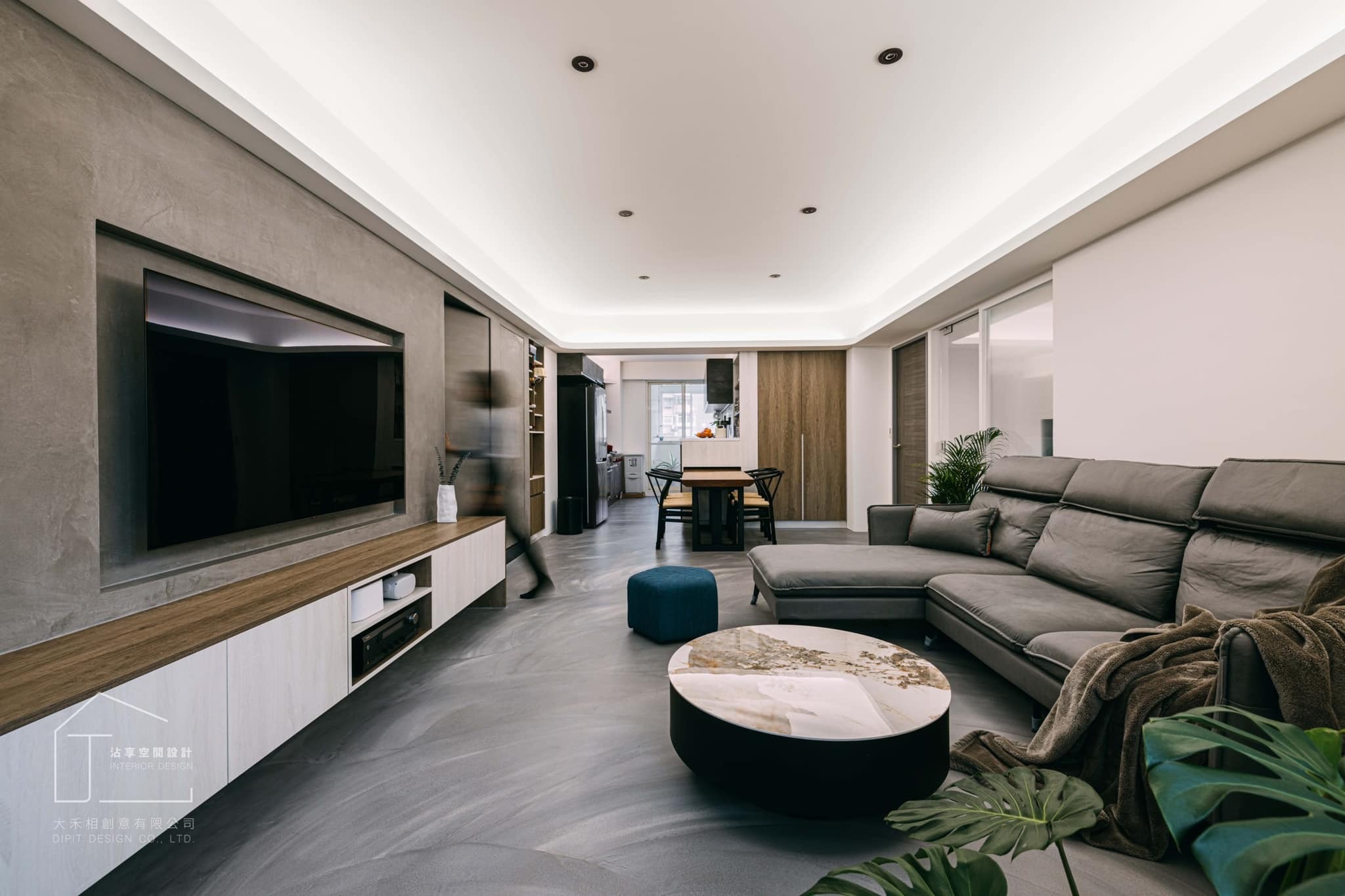 主要建材 | 盤多磨地坪、藝術漆電視牆、系統櫃跳色、復古磚