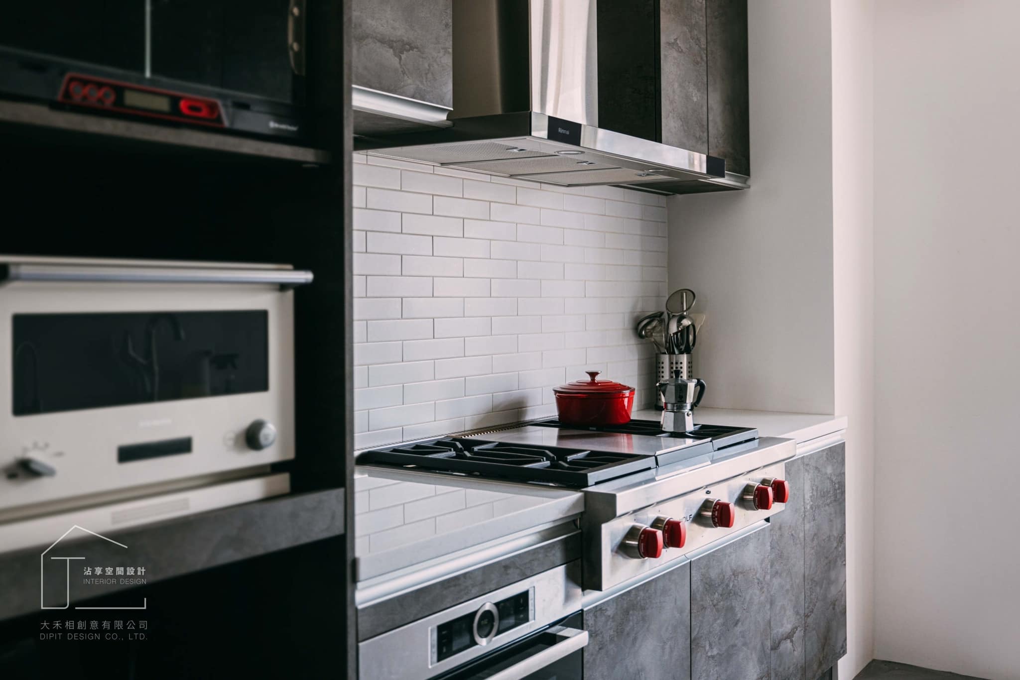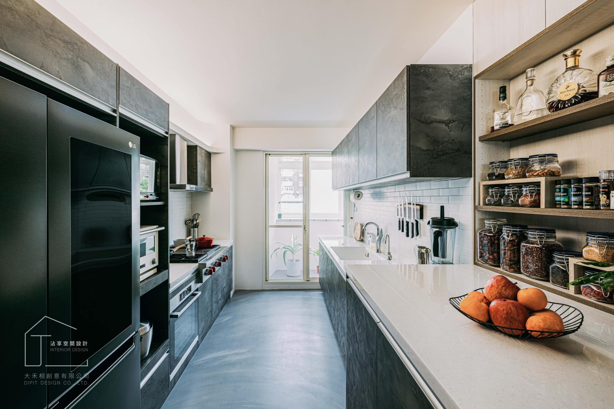 依照業主的喜好打造出美式風格的空間,尤為廚房區域最注重,無論是色調、材質、櫃體等設置, 都照美式風格打造而成,例如白色復古磚、易清潔的石英石檯面、帶有石紋的櫃體等;櫃體的尺寸都有按照美國爐具規格量身打造,目的就是為了讓業主在空間中感到舒心自適。而餐桌的部分則結合吧檯,讓餐桌可以因人數多寡而彈性收納,增強餐廚空間的機能性。