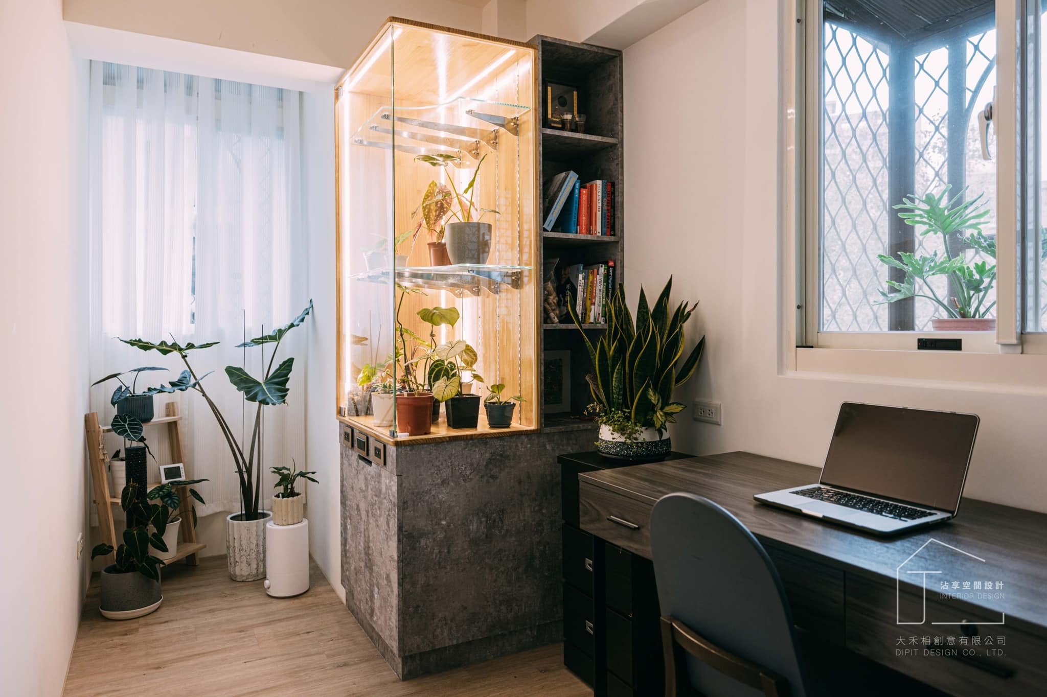 自然光沿著窗櫺撒下,薄紗暈染出了慢活氛圍,與植物為伴的書桌,與日光為伍的臥室,愜意氛圍圍繞著整體空間,為老宅增添了活水的寓意。考量到使用機能度,選用透光材質做為拉門的使用,不規則的設計為視覺增 添俏皮感受,也梳理出流動的主題。