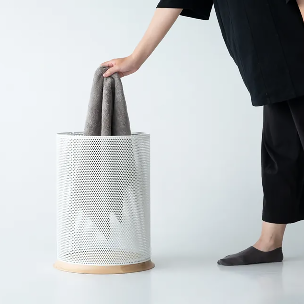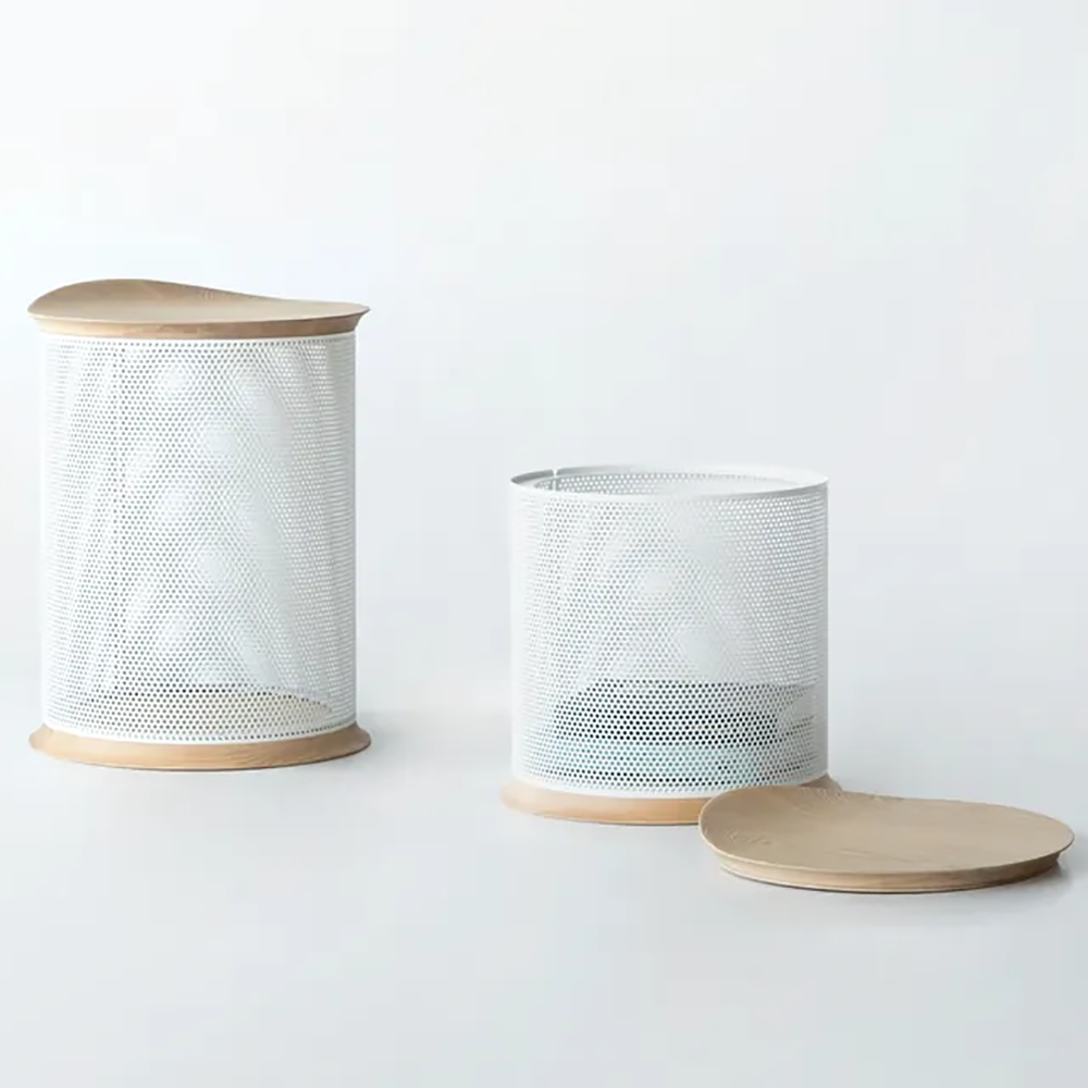桶身以沖孔板環繞,創造收納空間,孔洞通透交疊,自然呈現漣漪的優雅與平靜,