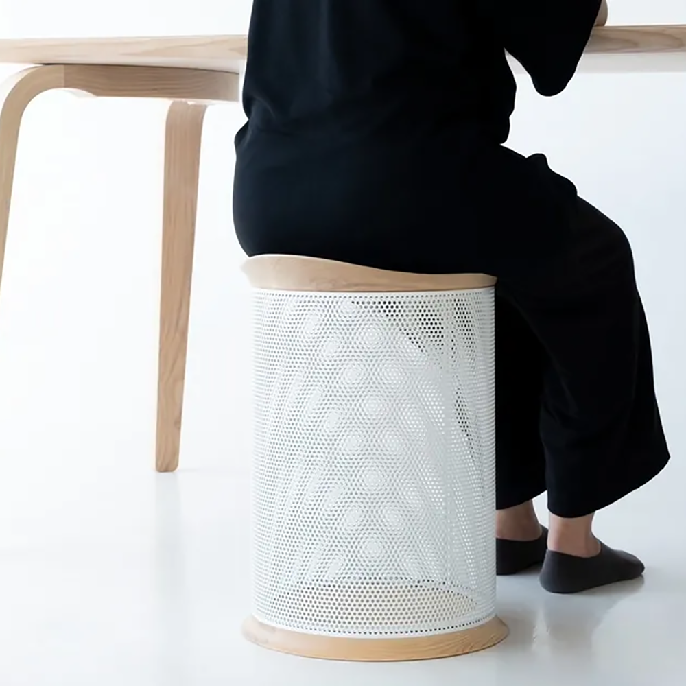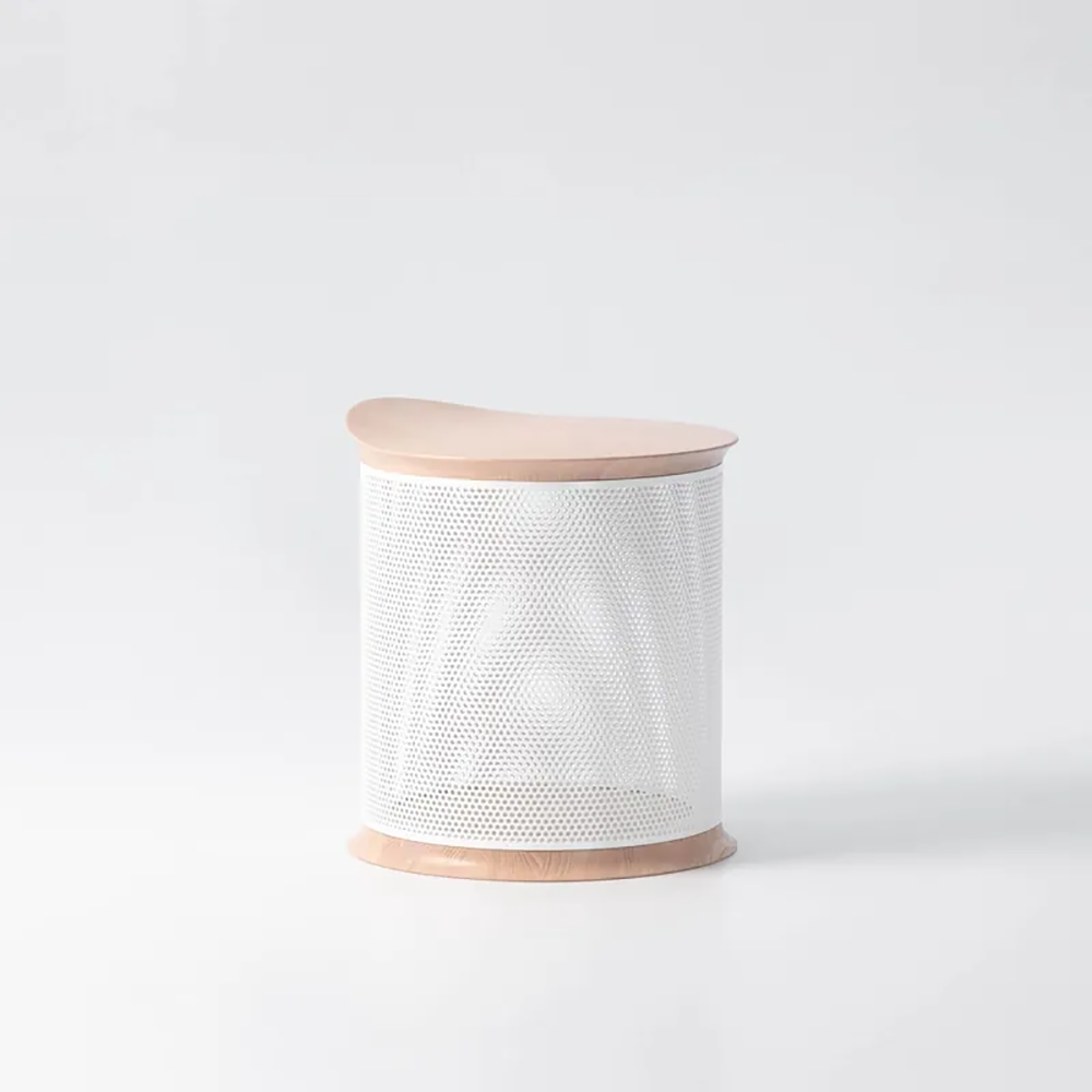 堅實結構、中空收納:凳几以金屬沖孔板環繞一周的堅實結構及中空的設計,創造了收納空間